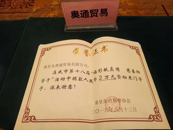 8月13日上午,2019年秦皇島市“福彩獻真情•慈善助學子”助學金發(fā)放儀式在秦皇島大酒店舉行。市委副書記丁偉、市人大常委會副主任曹玉寶、市政府副市長廉茹艷、市政協(xié)副主席鄭泉出席儀式。今年是市民政局、市福彩中心、市慈善協(xié)會組織“福彩獻真情•慈善助學子”公益助學活動的第18年,也是我公司參與資助活動的第10年。在此活動持續(xù)開展的18年中,活動累計投入4100多萬元福彩公益金,資助了7300多名寒門學子圓夢大學,成為我市作為“全國文明城市”“中國最具愛心城市”的深度實踐,贏得社會各界的廣泛贊揚。出席儀式的市領(lǐng)導和市民政局局長趙懷木一起為受助學生代表發(fā)放了助學金,并為我公司及其它捐資助學的愛心企業(yè)頒發(fā)了榮譽證書。隨后,往屆受助學生代表向大家分享了自己在助學金的幫助下圓夢成長的故事,應屆受助學生代表講述了自己坎坷的求學經(jīng)歷和得到資助后對未來美好生活的向往。希望他們一定要好好珍惜來之不易的求學機會,心懷感恩,努力學習,不懼困難,不負光陰,立志成為建設(shè)祖國和家鄉(xiāng)的棟梁之才。